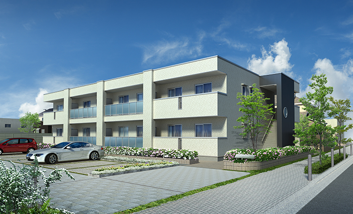 ライフスタイルに、より自分らしさを表現したいという世代に応えるため、シンプルモダンな外観とインテリアデザインを追及したアパートメント。全住戸の玄関を1階に設け、共用階段、開放廊下などの共用スペースを必要としないプライバシー重視の住まいです。